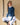 - Marinblå med vit krage och vita linjer vid ärmsluten för en tidlös tävlingslook.